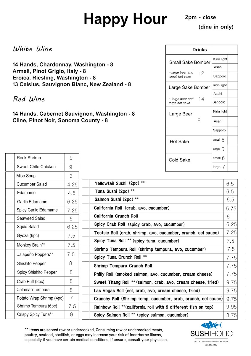 Welcome to Sushiholic, a delightful destination for sushi lovers located at 3957 E Camelback Rd, Phoenix. Known for its vibrant atmosphere and exceptional service, this sushi haven offers a menu that excites the palate with a variety of options.